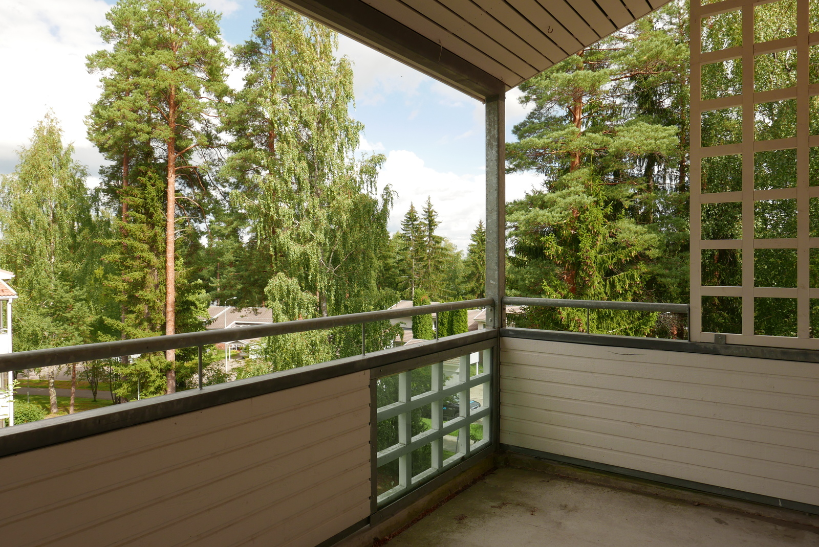 Parveke ilta-auringon puolelle. Huoneistolla on lämmitystolpallinen autopaikka.
